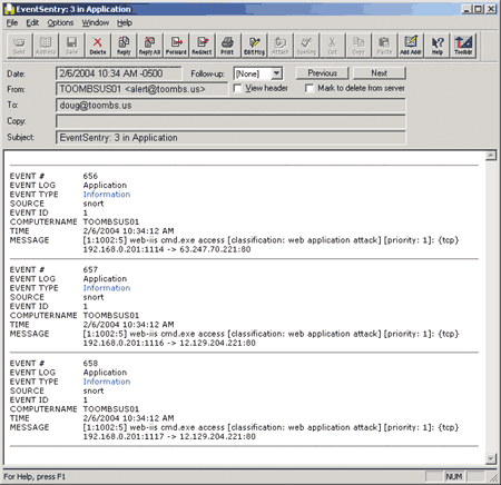 Экран 6. Предупреждение по почте об атаке на cmd.exe