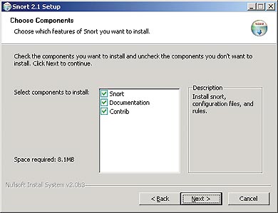 На следующем шаге следует определить компоненты Snort, которые требуется установить. Стандартный набор (экран 2) вполне приемлем, поэтому я рекомендую принять его и щелкнуть на кнопке Next. В диалоговом окне Choose Install Location необходимо указать каталог, в котором будет развернут Snort. Введя имя каталога, следует щелкнуть на кнопке Next, чтобы завершить процесс установки.