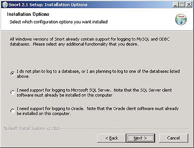 Как уже отмечалось, Snort обеспечивает запись информации в MySQL, SQL Server, Oracle и ODBC-совместимых базах данных. Достаточно выбрать подходящий тип базы данных в процессе установки Snort. Чтобы чрезмерно не увеличивать объем статьи, рассмотрим стандартные режимы протоколирования с использованием текстового файла и функции записи сообщений в журнал событий Windows.