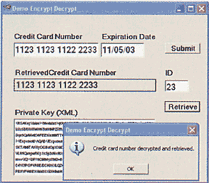 Как показано на экране 1, программа получает номер и срок действия кредитной карты пользователя. Когда пользователь нажимает кнопку Submit, из основного кода происходит вызов хранимой процедуры, которая в свою очередь вызывает сборку CLR. Последняя генерирует секретный ключ шифрования RSA и использует этот ключ для шифрования номера кредитной карты пользователя. Хранимая процедура записывает срок действия кредитной карты и шифрованные данные в базу данных (на этот раз в виде байтового массива). Основной код сохраняет секретный ключ шифрования (private encryption key, PEK) и отображает его в клиентском приложении для облегчения процедуры отладки. Однако PEK на сервере не хранится; таким образом, только сам пользователь может дешифровать закодированное значение на сервере, и только в том случае, если клиентское приложение хранит это значение на локальном диске. Я не могу сравнивать приведенный пример программ шифрования/дешифрации с эквивалентным кодом на T-SQL, такая функциональность в T-SQL просто не поддерживается, но этот пример демонстрирует механику создания CLR-кода, и описанный неформальный тест показал, что он прекрасно работает. Однако я бы посоветовал поэкспериментировать со своим CLR-кодом в условиях, приближенных к конкретной бизнес-среде.