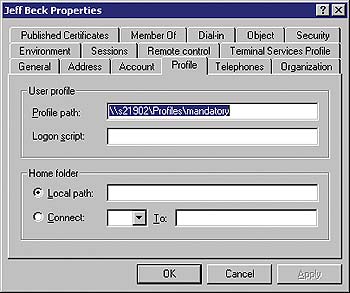 Для указания пути к тому месту в сети, где будут храниться пользовательские профили, применяется оснастка Active Directory Users and Computers консоли Microsoft Management Console (MMC) — в Windows 2000 Server и более поздних версиях — и User Manager for Domains — в NT Server 4.0.