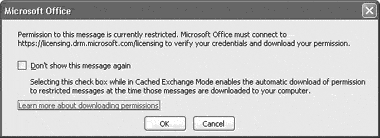Ряд неожиданностей подстерегает пользователей и при ответе на RMS-защищенные сообщения. Тело исходного сообщения не входит в ответ, независимо от параметров Reply. Кроме того, Outlook автоматически применяет правила оригинального сообщения к ответному посланию. Чтобы отменить эти ограничения, следует выбрать функцию Unrestricted Access из меню File, Permission перед отправкой сообщения.