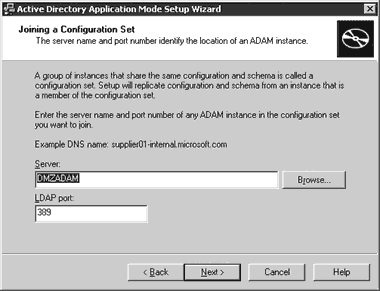 В отсутствие приложения, которое может создать схему, необходимо импортировать один или несколько таких классов. После завершения работы мастера процесс установки создает экземпляр ADAM и заполняет каталог схемой из LDIF-файлов, указанных администратором, или схемой и объектами реплицированного экземпляра.