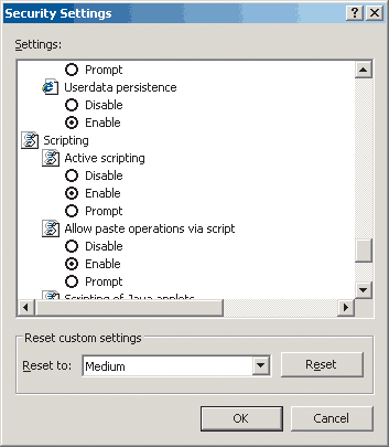 Это диалоговое окно, изображенное на экране 1, знакомо всем, кто хоть раз просматривал параметры Internet Explorer. Здесь для каждой из предлагаемых зон (Internet, Restricted Sites, Trusted Sites, Local Intranet) можно настраивать параметры отображения страниц: включать и отключать сценарии, cookies, компоненты ActiveX и .NET Framework, Java-апплеты, осуществлять загрузку элементов страницы из других доменов и т. п. Чтобы увидеть весь перечень, достаточно нажать кнопку Custom (см. экран 2).