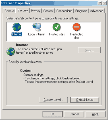Поскольку в зону Internet попадают по умолчанию все сайты, среди них могут оказаться и сайты, об угрозе со стороны которых мы просто не знаем, то есть сайты, чьи страницы могут содержать вредоносный код. Если оставить параметры по умолчанию, этот код запустится: настройки отображения предопределенного уровня Medium допускают отображение и исполнение активных компонентов. А методы социальной инженерии, которые могут применять злоумышленники для того, чтобы заманить пользователя на такую страницу, еще никто не отменял. Поэтому, чтобы застраховаться от подобных ситуаций, разумно для зоны Internet, как и для зоны Restricted Sites, установить настройки отображения предопределенного уровня High, в котором весь активный контент отключен, равно как и любые сценарии.