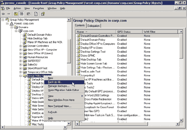 Администраторы доменов могут с успехом использовать GPMC для резервного копирования, восстановления и переноса GPO. Данная статья послужит руководством по применению консоли GPMC из состава SP1 для резервного копирования, восстановления и миграции GPO. Не стоит откладывать резервное копирование объектов GPO на завтра — лучше сделать это прямо сейчас!