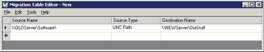 Таблица миграции служит для преобразования любых ссылок UNC из исходного домена в действительные ссылки в целевом домене. Мастер Import Settings автоматически предупреждает о путях UNC в домене-источнике и обеспечивает два способа для обработки путей UNC (экран 4). Первый способ, Copying them identically from the source (идентичное копирование из источника) — не самый лучший, потому что, как отмечалось выше, ссылки UNC или группы безопасности в целевом домене могут отсутствовать; таким образом, GPO вряд ли будет работоспособным после копирования в целевой домен. Поэтому предпочтительный способ — использовать таблицу миграции для преобразования в целевой GPO (Using this migration table to map them in the destination GPO). Чтобы построить первую таблицу миграции, показанную в окне Migrating References (экран 4), следует щелкнуть на кнопке New. В похожем на электронную таблицу диалоговом окне (экран 5) появляется редактор Migration Table Editor. Сначала можно внести в таблицу известную информацию. Поскольку данные импортируются из резервной копии, следует выбрать пункт Populate from Backup из меню Tools. Затем нужно выбрать GPO для миграции. В результате в столбец Source Name автоматически вносятся все ссылки UNC из указанного GPO. После этого достаточно ввести с клавиатуры в поле Destination Name новый путь UNC (или данные о группе безопасности) для каждого пути UNC (или группы безопасности), подлежащего переносу. На экране 5 видно, что в выбранные GPO входит путь UNC OLDServerSoftware. Но в целевом домене этот сервер отсутствует. Поэтому необходимо ввести подходящий путь для GPO, такой как NEWServerOurStuff, чтобы обеспечить корректность ссылок GPO в целевом домене.