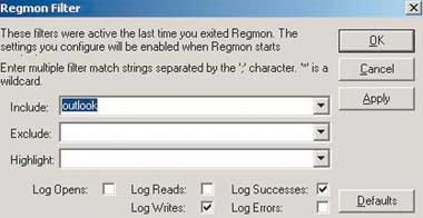 | Экран 1. Фильтр отображения утилиты Regmon |