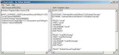 Выше уже упоминалась утилита Regmon от компании Sysinternals. Стоит рассказать еще об одной программе — Regtoadm, входящей в состав разработанного израильским программистом Ишхаром Гурвицем (Yizhar Hurwitz) пакета утилит NUTS (http://teachers.sivan.co.il/yizhar/). Программа позволяет, импортировав REG-файл, создать на его основе административный шаблон (см. экран 3).