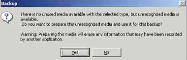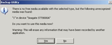 | Экран 7. Предупреждение о данных на ленте в Windows 2003 и XP |