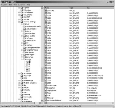 Таким образом, повысить уровень безопасности, настраивая зону My Computer и добавляя специальные зоны, совсем нетрудно. Для этого достаточно знать несколько секретов, в частности какие разделы реестра использовать, и имена и значения параметров.