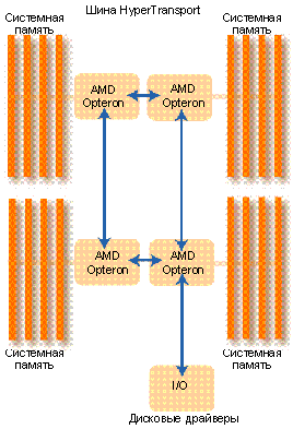 | Рисунок 3. Схема соединений шины AMD HyperTransport |