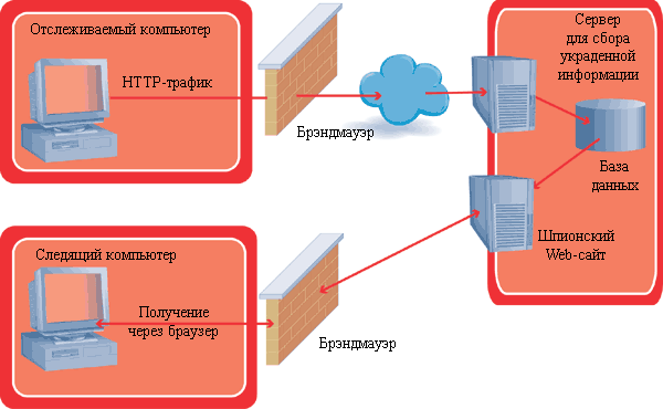Типичный пример функционирования «программы-жучка» (snoopware)