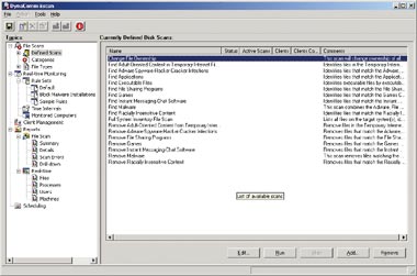 При первом запуске процедуры сканирования Find Malware из консоли на целевых клиентах была установлена клиентская служба. Служебная клиентская программа работает с Windows NT и более новыми версиями операционной системы, выполняет локальный поиск на клиентском компьютере и обеспечивает настраиваемый мониторинг и защиту в реальном времени. С помощью продукта можно проверять компьютеры Windows 9x, но их сканирование выполняется через сеть, загружая как каналы сети, так и сервер. В результате сканирования было получено множество файлов, совпадающих с сигнатурами DynaComm i:scan. Я открыл программу просмотра журнала сканирования и, щелкая правой кнопкой мыши, отыскал в списке файлы, которые можно открыть, переместить или удалить.