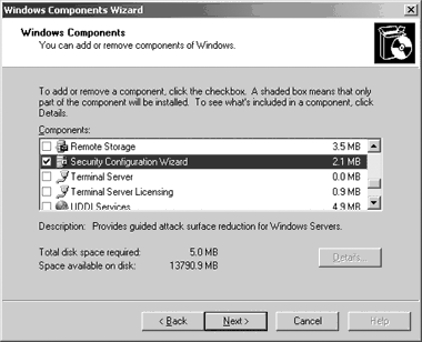 SCW можно инсталлировать только на системах Windows 2003 SP1. После установки Windows 2003 SP1 или модернизации к SP1, SCW доступен через утилиту Add or Remove Programs в панели управления. Чтобы запустить SCW, нужно зарегистрироваться в качестве члена локальной группы Administrators на целевом компьютере. Затем требуется открыть утилиту Add or Remove Programs, щелкнуть на вкладке Add/Remove Windows Components и вызвать Windows Components Wizard. На странице Windows Components (экран 1) следует установить флажок Security Configuration Wizard (в списке Components) и нажать Next. После завершения установки нужно закрыть утилиту, щелкнув на кнопке Finish.