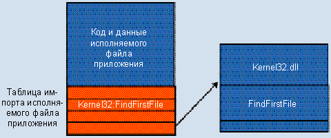 Рисунок 2. Приложение импортирует функцию FindFirstFile из kernell32