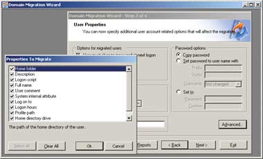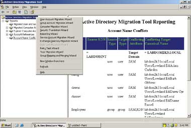 ADMT располагает минимальным, но полезным набором отчетов. Отчет Account Name Conflicts помог предсказать некоторые ошибки, а благодаря отчетам Migrated User and Groups и Migrated Computer Accounts проще отслеживать действия пользователей, уже прошедших процедуру миграции. Хотелось бы получить отчеты со сравнительными данными об исходном и целевом доменах (например, с информацией о еще не перемещенных учетных записях).