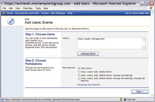 Экран 4. Предоставление пользователю доступа к ресурсу SharePoint