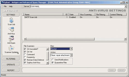 Экран 3. Окно Sybari Antigen for Microsoft Exchange