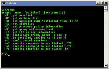 Специалисту по Windows, знакомому с Linux, полезно иметь исчерпывающий (и бесплатный) инструмент для сбора самой разнообразной информации о системе Windows. Именно таким инструментом является Enum. Запускаемая из командной строки утилита с консолью управления сообщает массу полезной информации о компьютере Win32 через службу NetBIOS, которая работает с TCP-портом 139. В ходе как неаутентифицированных (null session), так и аутентифицированных сеансов Enum может извлекать списки пользователей, систем, общих ресурсов, групп и их членов, паролей и информации о политиках LSA (Local Security Authority — локальный диспетчер безопасности). С помощью Enum можно проводить примитивные словарные атаки методом перебора на индивидуальные локальные учетные записи. На экране 1 показана подробная информация о системе Windows, которую можно дистанционно собрать с помощью этого инструмента. Enum (наряду с некоторыми другими превосходными инструментами, такими как Pwdump2 и LSAdump2) можно загрузить с сайта BindView по адресу http://www.bindview.com/services/razor/utilities.