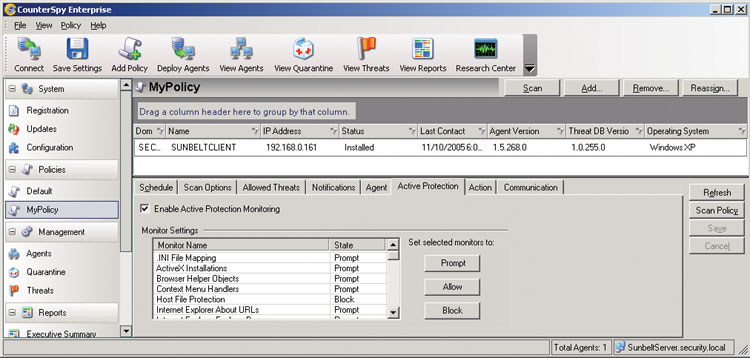 Экран 1. Окно ActiveProtection в CounterSpy