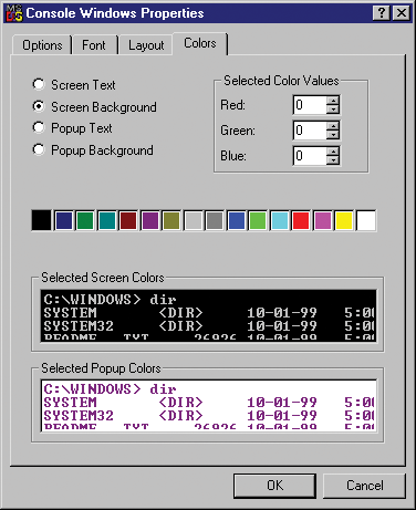 | Экран 2. Диалоговое окно Console Windows Properties |