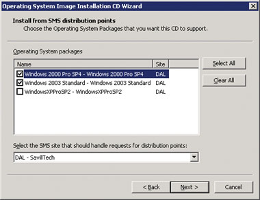 Вторая часть процесса OSD — создать компакт-диск с образом установки. Обычный способ развернуть программу в SMS — объявить ее для коллекции компьютеров, на которых установлены клиенты SMS. Затем клиент SMS загружает пакет из точки дистрибуции и устанавливает его на клиентском компьютере SMS. Однако новый компьютер не входит в коллекцию и не располагает клиентом SMS, поэтому новая система не принимает объявлений. При развертывании операционной системы на новом компьютере используется режим Image Installation CD, чтобы создать файл в формате ISO (который, как и образ операционной системы, необходимо записать на компакт-диск), содержащий загрузочную среду WinPE и оболочку OSD. WinPE и оболочка OSD извлекают образ операционной системы из точки дистрибуции и устанавливают его (наряду с другими компонентами) на целевом компьютере.