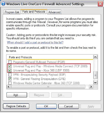 Ответ. Хотя приложение Windows Media Connect в брандмауэре OneCare включено, необходимые для коммуникации порты закрыты. Для решения проблемы выполните следующие действия: