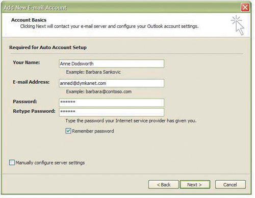Auto Account Setup — одна из наиболее широко разрекламированных функций Outlook 2007. Она должна автоматически настраивать учетные записи электронной почты IMAP, POP3 и Exchange Server при вводе имени пользователя и пароля. По моему опыту функция работает пока только с учетными записями Exchange (это приемлемо для бета-версии).