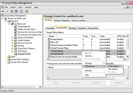 Как выявить различие между двумя объектами Group Policy Object (GPO)?
