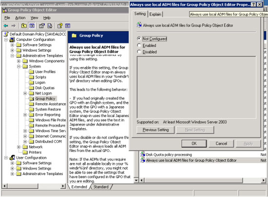 Того же результата можно добиться, установив значение параметра реестра по адресу HKEY_LOCAL_MACHINESoftwarePoliciesMicrosoftWindowsGroup PolicyOnlyUseLocalAdminFiles равным 1. Такое значение параметра означает, что если на станции, на которой редактируется GPO, используемые .adm-файлы GPO отсутствуют, некоторые настройки объекта групповой политики могут не отображаться (но поскольку настройки фактически хранятся в файле Registry.pol, это не означает, что неотображаемые настройки больше не будут применяться к целевым станциям Group Policy).