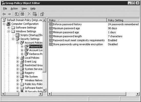 Как почти любая система, в которой используется аутентификация с паролем, Windows позволяет определить требования к надежности паролей (а следовательно, и аутентификации). Политика паролей в домене определяется в одном или нескольких объектах групповой политики (GPO), связанных с корневым каталогом домена. Не следует путать политику паролей в домене с политикой паролей для локальных учетных записей, которую также можно установить через GPO. По умолчанию в корневом каталоге существует всего один GPO, который называется Default Domain Policy. Если открыть этот GPO и перейти в Computer ConfigurationWindows SettingsSecurity SettingsAccount PoliciesPassword Policy, то можно увидеть политики паролей, применяемые ко всем пользователям домена (экран 1). Прежде чем настраивать эти параметры, необходимо разобраться, какие проблемы можно решить с помощью политики паролей, а какие нет.