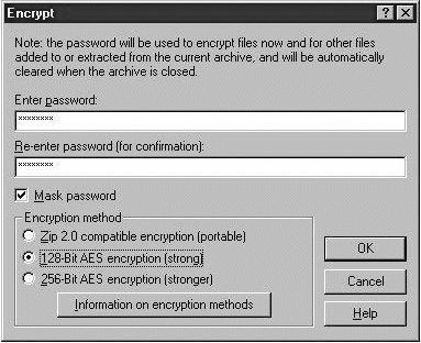Один из наиболее популярных методов создания архивов сжатых файлов — метод zip-компрессии; его поддерживают практически все архиваторы. И одно из самых распространенных на сегодня средств zip-компрессии — приложение WinZip. Его можно использовать как автономную программу, встроить в Windows Explorer для облегчения доступа, а также с помощью модуля WinZip Companion for Outlook интегрировать этот продукт с клиентом Outlook. WinZip, как и многие другие оснащенные средствами zip архиваторы, обеспечивает возможность шифрования по методу Zip 2.0 Encryption. Но надо сказать, что защита файлов с помощью этого метода недостаточно надежна. Более приемлемый вариант шифрования реализован в продукте WinZip 9.0. Как показано на экране 1, ныне WinZip поддерживает спецификацию Advanced Encryption Standard (AES), где используются 128-разрядные или 256-разрядные ключи шифрования. AES — относительно новая технология, но ее уже считают промышленным стандартом.