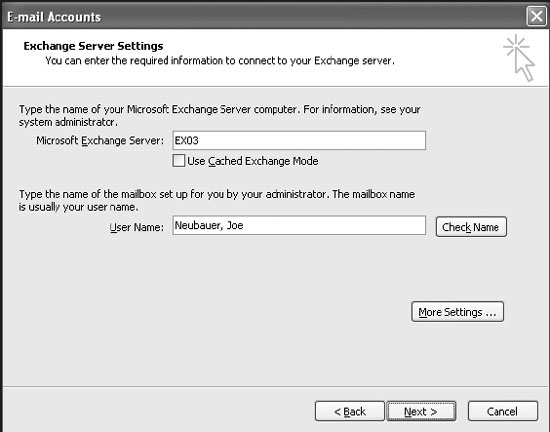 Еще один фрагмент информации, необходимый для автоматической генерации почтового профиля, — имя почтового сервера Exchange. Outlook использует этот сервер, чтобы выполнить поиск при преобразовании имен почтовых ящиков. Выбирая почтовый сервер, следует соблюдать некоторые условия.