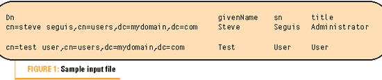В тех компаниях, которые используют Active Directory (AD) для хранения информации о пользователях, часто возникают проблемы, связанные с необходимостью обновления информации для большой группы людей. Например, если некоторое подразделение компании в полном составе куда-либо переезжает, то возникает задача обновления информации в AD об адресах и телефонах сотрудников данного подразделения. В таких случаях обычно пользуются файлами в формате LDIF (Lightweight Directory Access Protocol (LDAP) Data Interchange Format) совместно с утилитой ldifde.exe либо разрабатывают специальные сценарии, использующие функциональность ADSI (Active Directory Service Interfaces). Однако создавать LDIF–файлы для выполнения подобных обновлений – дело непростое, поскольку при формировании таких файлов может потребоваться большое количество манипуляций со строковыми данными. Решение, построенное на базе специальных сценариев ADSI, позволяет лучше контролировать процесс внесения изменений – в этом случае можно создавать удалять или изменять объекты любым, наиболее удобным для вас способом (например, можно изменять формат номера телефона, изменять регистр символов со строчных на прописные и т.д.) – но при этом необходимо найти способ извлечения обновленной информации и ее чтения внутри сценариев.