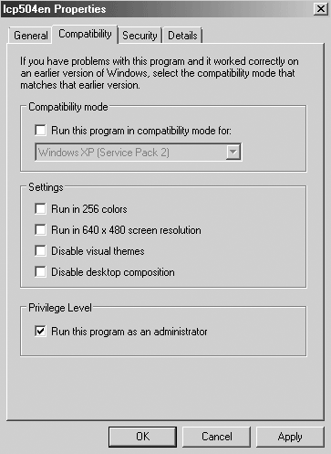 Пользователи могут настроить приложение на постоянное выполнение с административными привилегиями: достаточно установить флажок Run this program as an administrator на вкладке Compatibility окна Properties приложения (экран 8). Эти параметры доступны пользователям как ограниченных, так и привилегированных учетных записей. В режиме Run this program as an administrator поведение AAM не изменяется: система по-прежнему просит пользователей ограниченных учетных записей ввести административные учетные данные, а пользователей привилегированных учетных записей — подтвердить действие.