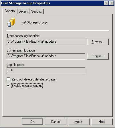О. Если база данных испорчена, Exchange восстанавливает последнюю полную резервную копию, а затем повторяет операции из всех журналов транзакций. Однако можно включить циклический режим ведения журналов, в котором журналы транзакций используются повторно после заполнения 5 Мбайт. При этом в случае потери базы данных данные можно восстановить только с точки последнего резервного копирования. Чтобы включить циклическое ведение журналов: