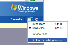 - Выберите Desktop Search Options из меню параметров, как показано на иллюстрации.