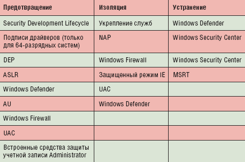 Таблица . Обзор реализованных в Windows Vista средств защиты от вредоносных програм