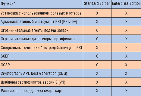 Таблица . Сравнительные характеристики PKI редакций Longhorn Server Standard Edition и Enterprise Edition
