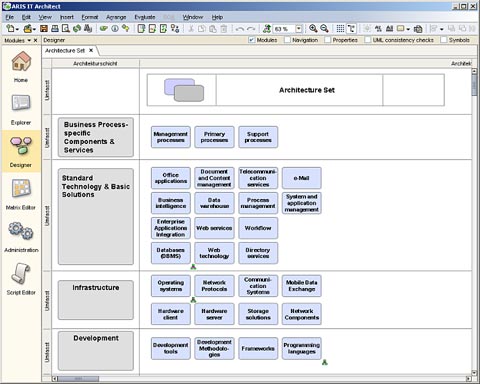 ARIS IT Architect - универсальный инструмент для описания архитектуры предприятия, от стратегии до бизнес-процессов и проектов, реализующих эту стратегию. Продукт поддерживает описание архитектуры предприятия в соответствии со многими известными стандартами, в том числе DoDAF, C4ISR, Zachman, TOGAF, TEAF, FEAF, ArchiMate и IT City Planning. ARIS IT Architect - основа ARIS Enterprise Architecture Solution, одного из решений компании IDS Scheer, предназначенного для комплексного управления архитектурой предприятия. С помощью этого продукта можно описать сложную ИТ-архитектуру современного предприятия в привязке к его бизнес-процессам и стратегии, провести стандартизацию приложений и элементов ИТ-инфраструктуры и управлять их жизненным циклом, разработать и целенаправленно осуществлять программы и проекты по управлению ИТ-архитектурой и архитектурой предприятия в целом. ARIS IT Architect базируется на web-технологиях. С его помощью можно организовать совместную многопользовательскую, удаленную и распределенную работу по описанию и поддержанию в актуальном состоянии архитектуры предприятия. При использовании ARIS Business Publisher полученная база знаний становится доступной всем сотрудникам компании.