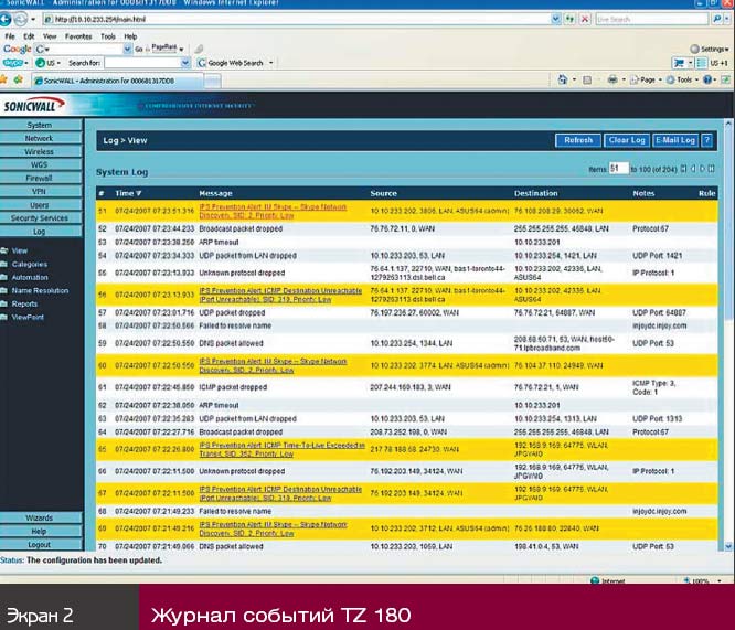 Достоинства: простая установка; настройка беспроводного доступа хорошо интегрирована и облегчает администрирование; экраны журнала событий предотвращения несанкционированного доступа напрямую связаны с соответствующим экраном настройки сигнатуры, что позволяет быстро выполнить восстановление; функциональность может быть расширена (SonicOS Enhanced).