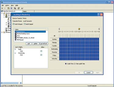 контроль, аудит и теневое копирование для локальных и сетевых принтеров. Теперь администратор может контролировать отправку документов на печать по пользователям и времени. Поддерживаются все интерфейсы (USB, LPT, сеть и т. д.). Также можно включить аудит и теневое копирование для печатаемых документов. Сохраненные позже теневые копии напечатанных документов можно просмотреть с помощью встроенного в DeviceLock инструментария;