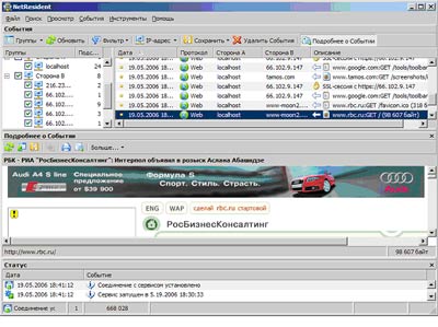 При использовании традиционных сетевых анализаторов мониторинг потоков данных на уровне приложения представляет собой нелегкую задачу. Хотя некоторые из таких продуктов обладают достаточной функциональностью для реконструкции web-сессий, разговоров через службы мгновенных сообщений и подобных сетевых событий, эти возможности очень ограничены и автоматизируются с большим трудом. И здесь на помощь приходит система мониторинга контента NetResident. Эта программа была создана для решения конкретной задачи - создания высокоуровневого автоматического мониторинга сетевого контента. Другими словами, NetResident перехватывает, сохраняет, анализирует и воссоздает события в сети, а не просто отдельные пакеты или сложные для интерпретации TCP-сессии.