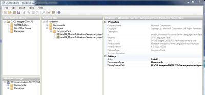 4. Скопируйте языковые пакеты в папку Packages. По завершении диспетчер Windows System Image Manager должен выглядеть примерно так, как на экране ниже: