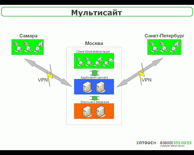 Серверы корпоративных приложений размещены на серверах-лезвиях IBM с процессорами Intel и операционной системой Windows. Под систему Discovery (Weblogic) выделены два лезвия по 8 процессорных ядер в каждом (процессоры Intel Xeon Quad Core). Нагрузочное тестирование данной конфигурации, проведенное на этапе внедрения, показало способность приложения поддерживать одновременную работу до 500 пользователей.