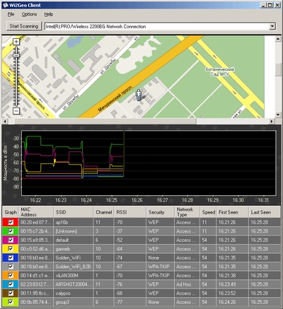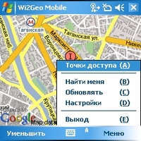 Эксперименты показали, что в большинстве случаев поблизости можно "увидеть" 5-10 сетей. При этом отсутствует необходимость в подключении к обнаруженным сетям, не важно, кому они принадлежат и как работают, достаточно того, что они есть. Обмен данными между вашим устройством и сервером Wi2Geo может происходить разными путями - через активное подключение Wi-Fi, через GPRS или WAP.