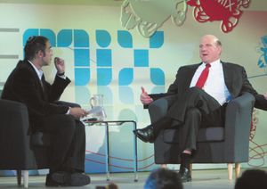 Чуть позже генеральный директор Microsoft выступил перед сообществом российских Web-разработчиков на форуме ReMIX, прошедшем в Москве в Колонном зале Дома союзов. Это мероприятие стало продолжением в России известной технологической конференции MIX, которую уже третий год проводит Microsoft для Web-разработчиков, Web-дизайнеров и активных сетевых пользователей. Выступление Стива Балмера началось с обращения к разработчикам программного обеспечения. По мнению главы Microsoft, программное обеспечение изменит мир, и именно от разработчиков зависит, каким он будет завтра. Конвергенция лучшего, что могут дать Internet, персональный компьютер, корпоративные центры обработки данных, мобильные устройства и телевизор, — это основа принципа Software+Services, который является одним из главных направлений работы Microsoft. Продукты компании, созданные по принципу Software+Services, используются уже сейчас: это Windows Live, Silverlight, Windows Communication Foundation и ряд других технологий.