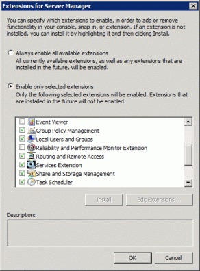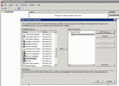 4. Затем выберите Server Manager в разделе Selected snap-ins и щелкните на кнопке Edit Extensions.