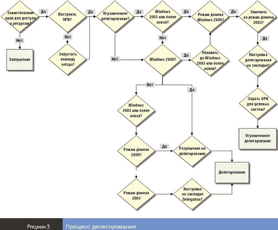 Решающим фактором для использования Kerberos является вопрос о том, требуется ли поддерживать функцию делегирования. На рис. 3 показано, как проходит процесс делегирования и ограниченного делегирования.